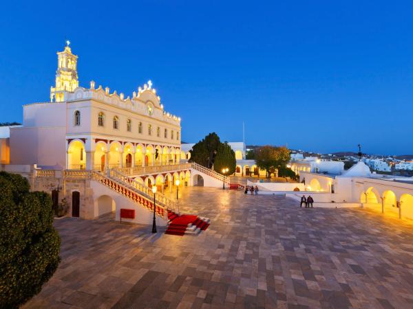 Πρωινή αναχώρηση 05:30πμ από Πειραιά και 05:45πμ από Αθήνα. Πάμε στο λιμάνι της Ραφήνας για να «πάρουμε» το πλοίο για την Τήνο. Πριν καλά-καλά μεσημεριάσει φτάνουμε στο νησί της Μεγαλόχαρης. Ξεκινάμε την περιήγηση και 1η μας στάση η Μονή Κεχροβουνίου ή Αγίας Πελαγίας. Το τέμπλο του καθολικού είναι ξυλόγλυπτο με φύλλα χρυσού και το κελί της Αγίας Πελαγίας είναι χώρος προσκυνήματος. Η Αγία Πελαγία με το όραμά της οδήγησε τους Τηνιακούς στην εύρεση της εικόνας της Παναγίας στις 30 Ιανουαρίου 1823. Αναχωρούμε για να γνωρίσουμε το Φαλατάδος, χωριό γνωστό για τη ρακή του, τα κρασιά του και το Σπίτι του Σκίτσου που λειτουργεί ως Μουσείο Γελοιογραφίας και είναι το μοναδικό στη ΝΑ Ευρώπη. Παραμονή για προαιρετικό γεύμα και αργότερα θα επιστρέψουμε στο κέντρο όπου και το ξενοδοχείο μας για τακτοποίηση και ξεκούραση και αργότερα να παρακολουθήσουμε το έθιμο του Επιταφίου. Οι επιτάφιοι της Χώρας συναντιούνται στον πεζόδρομο του λιμανιού και γίνεται η δέηση. Λιτά στολισμένοι, γιατί είναι έργα τέχνης. Στην τελετή ο καθολικός επιτάφιος του Αγίου Νικολάου κατευθύνεται προς τον κοντινό ορμίσκο Καλάμια, μπαίνει στη θάλασσα μαζί με τον παπά και τα εξαπτέρυγα, ενώ στην απέναντι βραχονησίδα ανάβουν σταυροί και τα καΐκια σφυρίζουν αποδίδοντας τιμές. Τελετουργικό μοναδικό. Επιστροφή στο ξενοδοχείο, διανυκτέρευση.